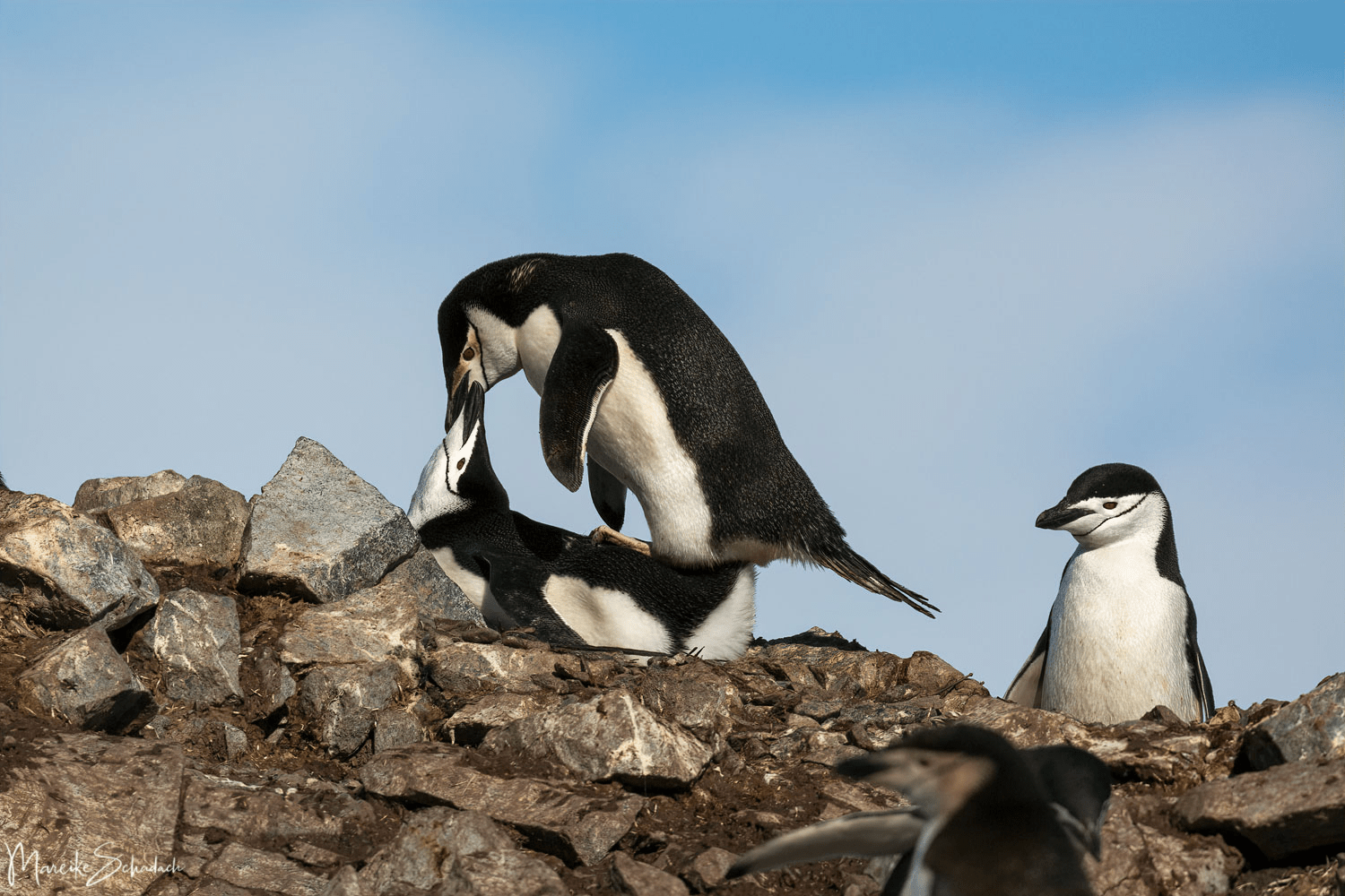 Chinstrap penguins (Pygoscelis antarctica) making more penguins, Halfmoon Island